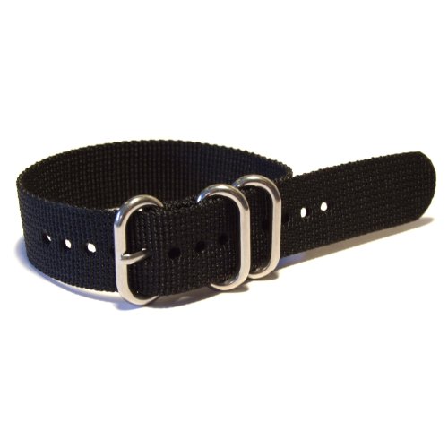 Bracelet de montre, Nylon ZULU avec 3 anneaux polis, Noir, 20mm Avis